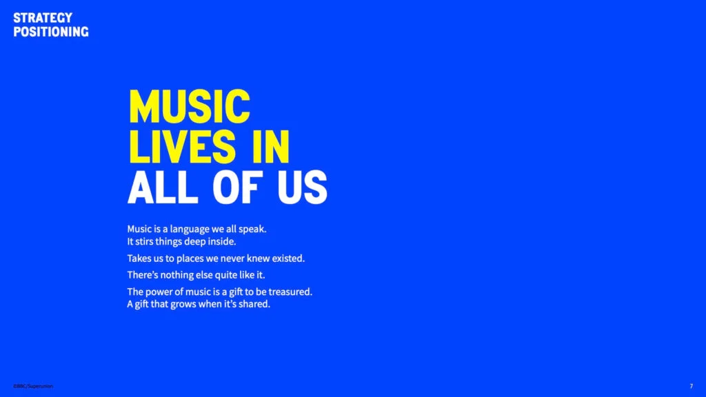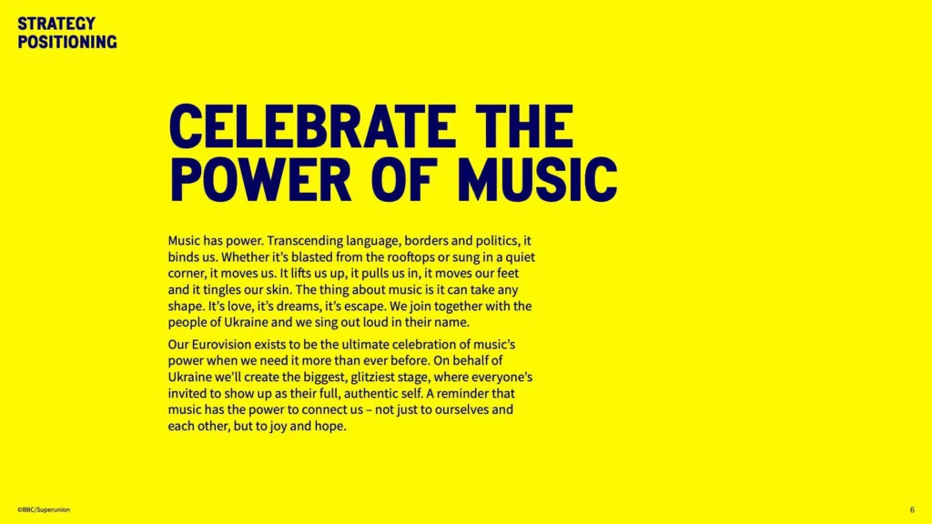 We created the brand strategy for the BBC that transformed into a new proposition for a global icon, winning the Superunion and Starlight the world’s most prestigious branding award—a Clio—and capturing the hearts of Liverpool. This resulted in a £54.8 million boost to the local economy and brought half a million visitors to the city. Our strategic proposition for Eurovision Liverpool 2023, ‘United by Music,’ was so well-loved by the European Broadcasting Union (EBU) that it became the ongoing brand proposition for Eurovision. A proud moment, and a testament to the quality and longevity of our strategy.